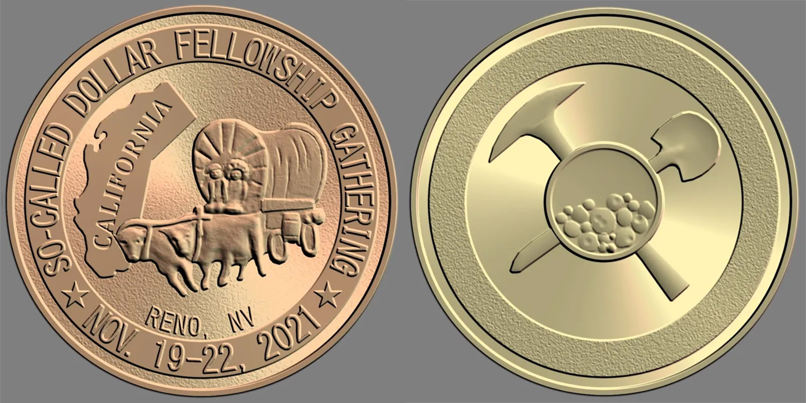 This design was featured in a 2021 medal for the So-Called Dollar Fellowship Gathering held by Jeff Shevlin who commissioned the gathering medal from Daniel Carr and the Moonlight Mint. Below is an advanced digital model rendering for Daniel Carr of the medal.