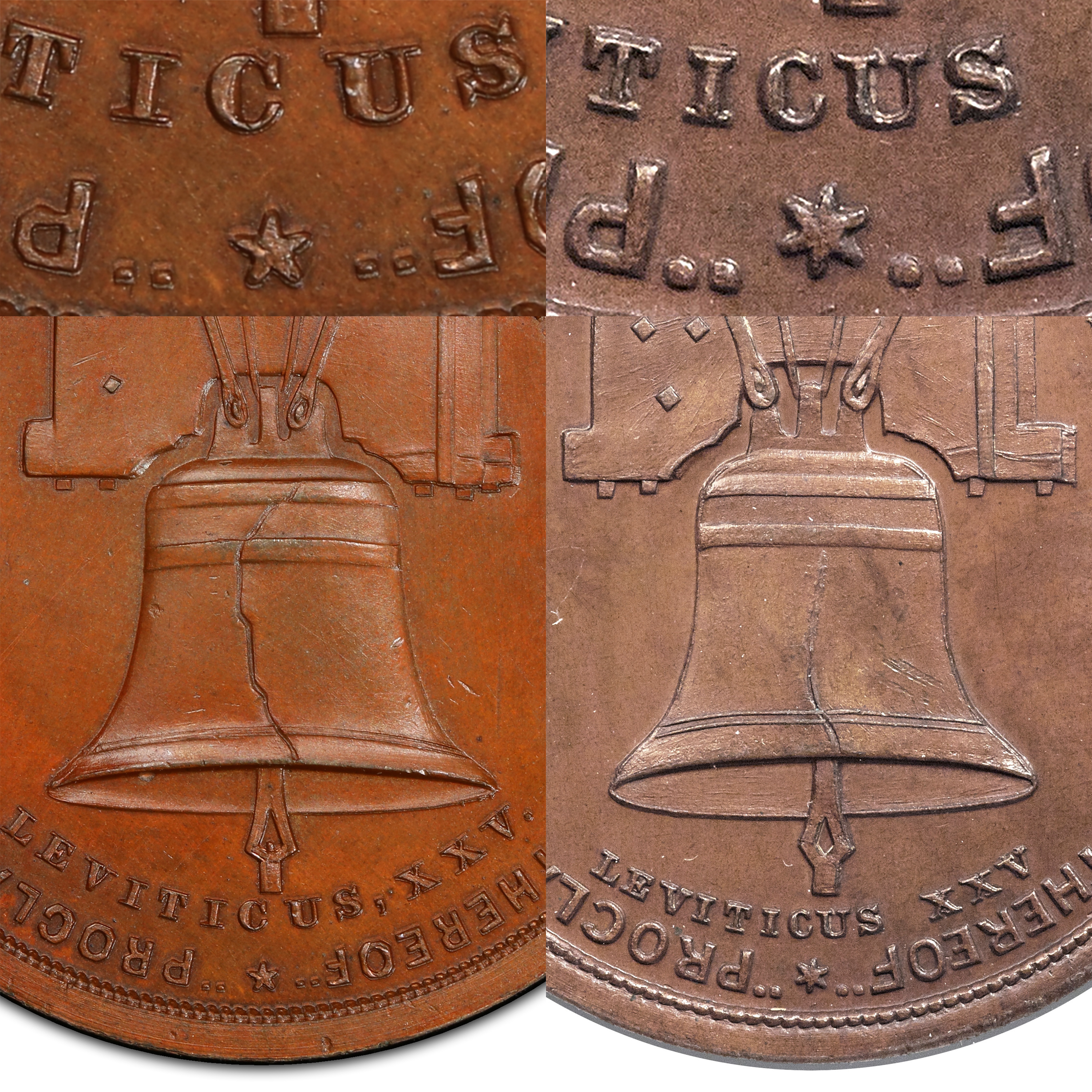 A new discovery for the So-Called Dollar "Centennial Small Liberty Bell With Star / Independence Hall With Trees" by John William Kline, Jr. has been identified, namely that there are two different "With Star" varieties, a 5-pointed star and a 6-pointed star variety. Previously, all star specimens were considered one variety, along with a "No Star" variety. The discovery was made by John Wang who confirmed it with Jeff Shevlin, the So-Called Guy. John stated: