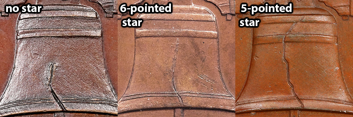 The 6-pointed star variety is the common die seen on the star pieces and this variety is known in bronze, brass, and silver.